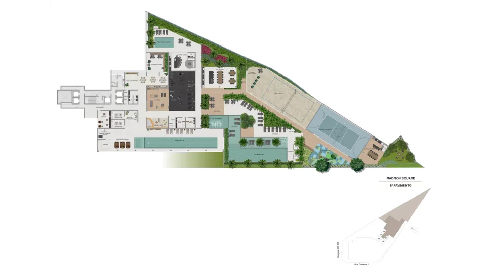 DIVIRTA-SE, RELAXE No Madison Square, você recarrega as energias sem sair de casa nas piscinas, no SPA, na Sauna e em diversos espaços projetados para o seu bem-estar.