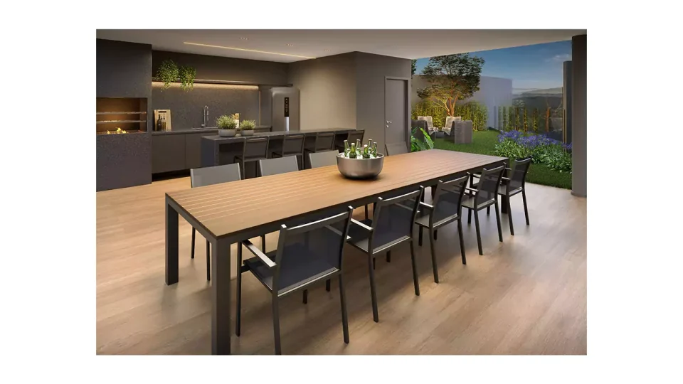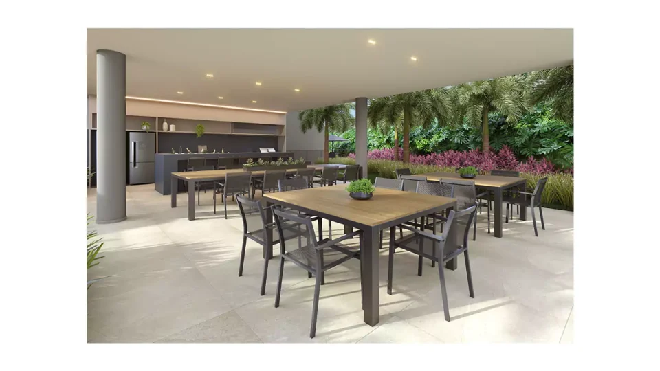 *Os equipamentos eletrônicos não serão entregues. **Após a entrega do empreendimento e instalação do condomínio, a construtora irá indicar empresas e profi ssionais especializadas para os serviços de Manutenção e pequenos reparos, Personal Trainer, limpeza geral, Grab Go e Pet Care. Os custos de cada utilização são em sua totalidade de responsabilidade dos usuários. Serviços sujeitos à disponibilidade. ***Estes pontos serão controlados por um sistema de gerenciamento de demanda (carga elétrica disponível para uso) que proporcionará o uso simultâneo escalonado, conforme a carga disponível no momento. Ficará a cargo do condomínio a aquisição e instalação da estação carregadora, dos cabos e do disjuntor. Serão entregues 9 pontos para estação carregadora de carro elétrico, distribuídos a critério da construtora. Haverá a possibilidade de expansão de 8 pontos de recarga de carros elétricos, totalizando 17 pontos, a cargo do condomínio.