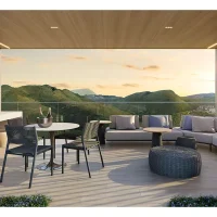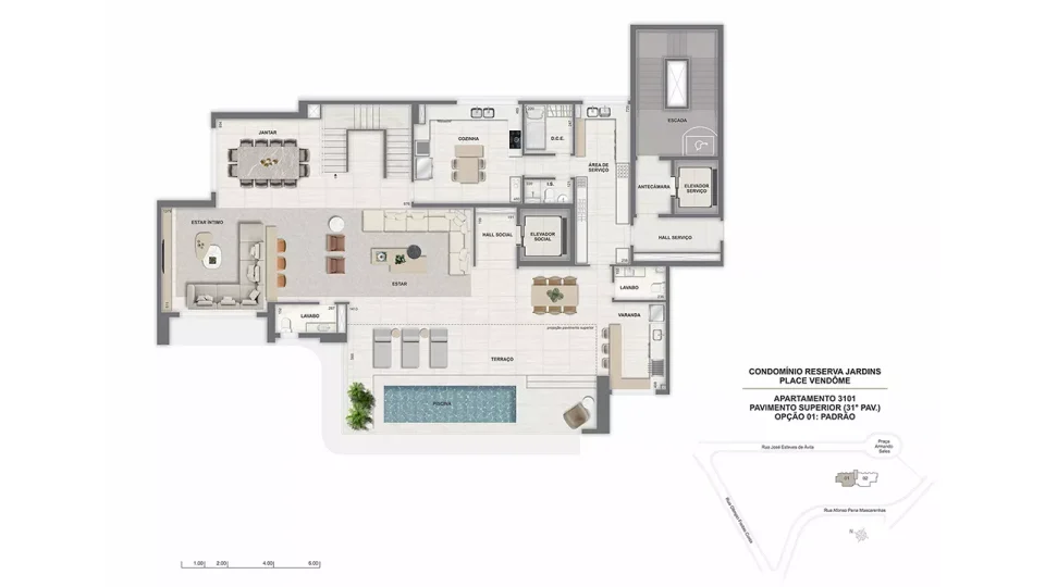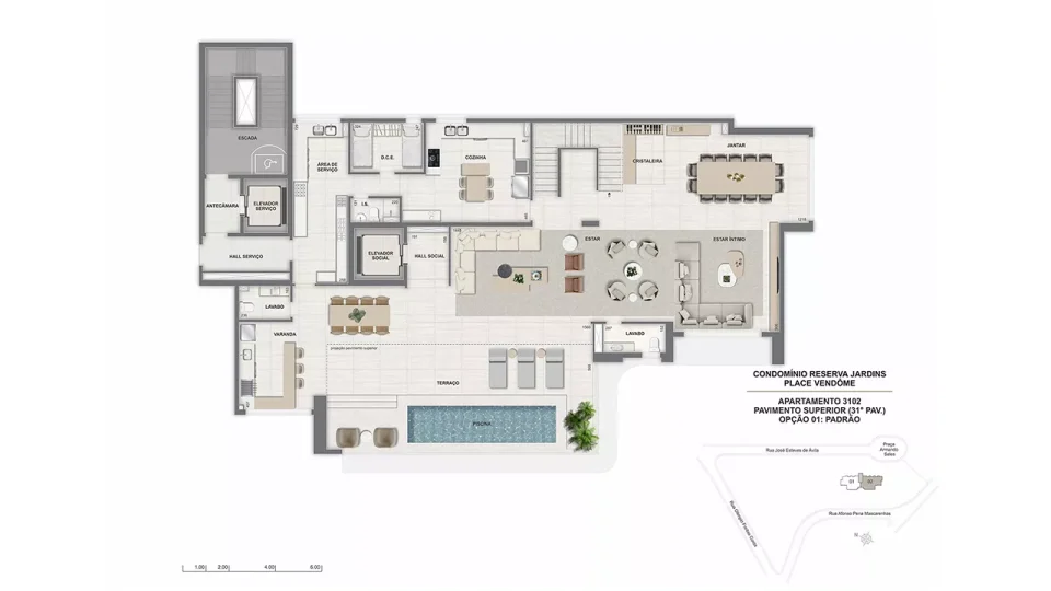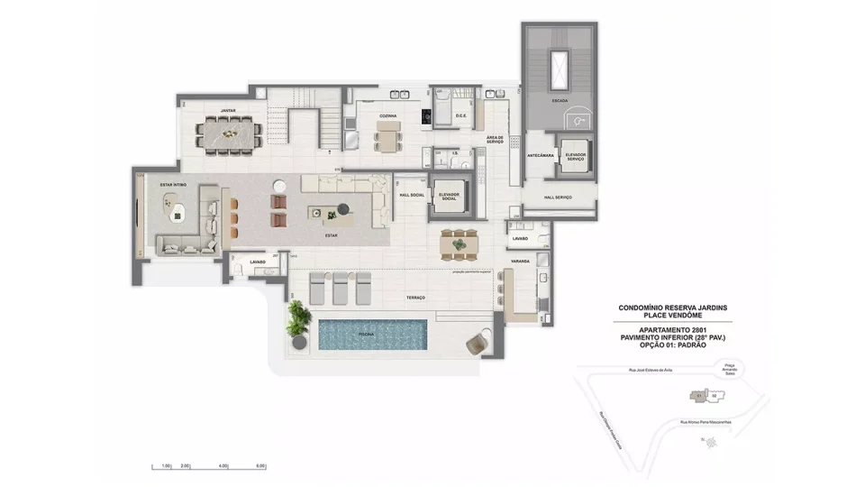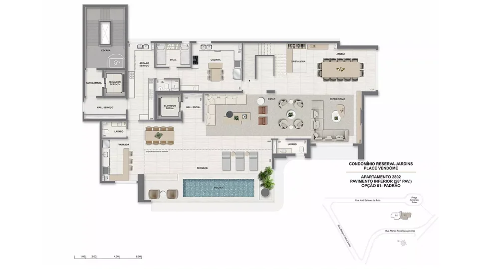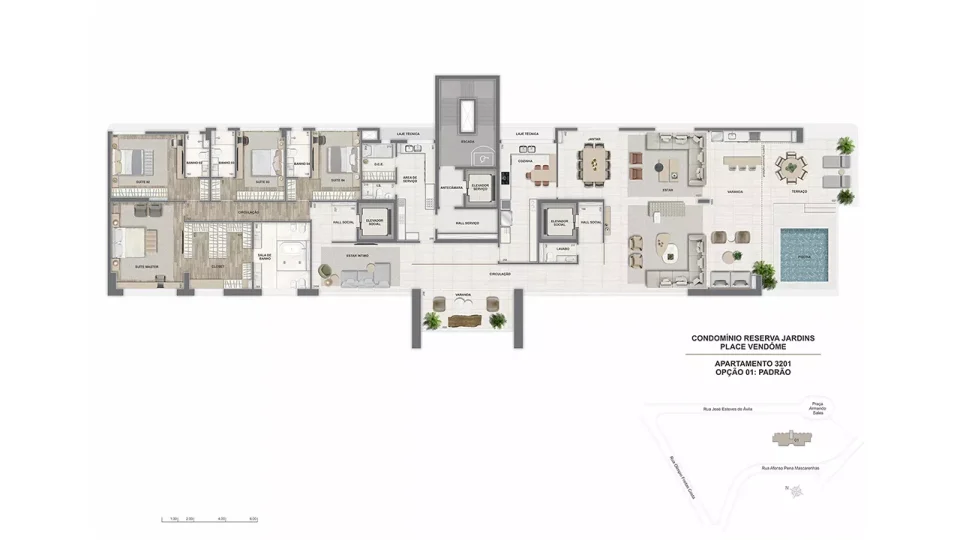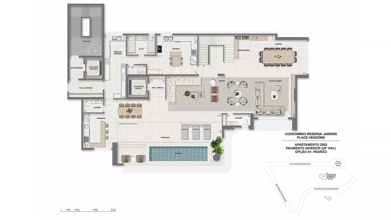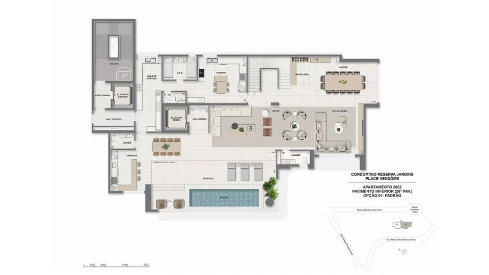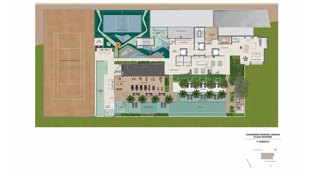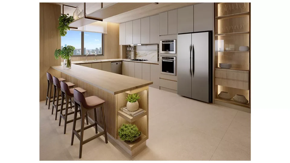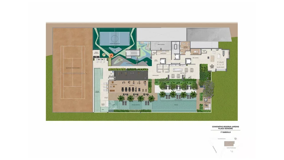 * O gerador que atenderá ao funcionamento de ao menos 01 elevador da torre, bombas, parte da iluminação das áreas comuns e de emergência. ** Será entregue rede wireless nas áreas de lazer, incluindo cabeamento e roteadores, distribuídos a critério da construtora. A contratação da internet, disponibilizada por empresas especializadas, ocorrerá sob responsabilidade do condomínio. *** Estes pontos serão controlados por um sistema de gerenciamento de demanda (carga elétrica disponível para uso) que proporcionará o uso simultâneo escalonado, conforme a carga disponível no momento. Ficará a cargo dos proprietários a aquisição e instalação da estação carregadora, dos cabos e do disjuntor. **** Em ambientes específicos, a serem definidos pela construtora.***** A leitura será feita via rádio frequência. A contratação de empresa especializada para a leitura é de responsabilidade do condomínio.